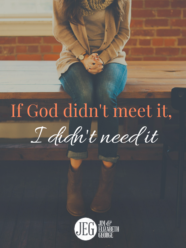 Read “If God Didn’t Meet It, I Didn’t Need It” on Elizabeth & Jim George.